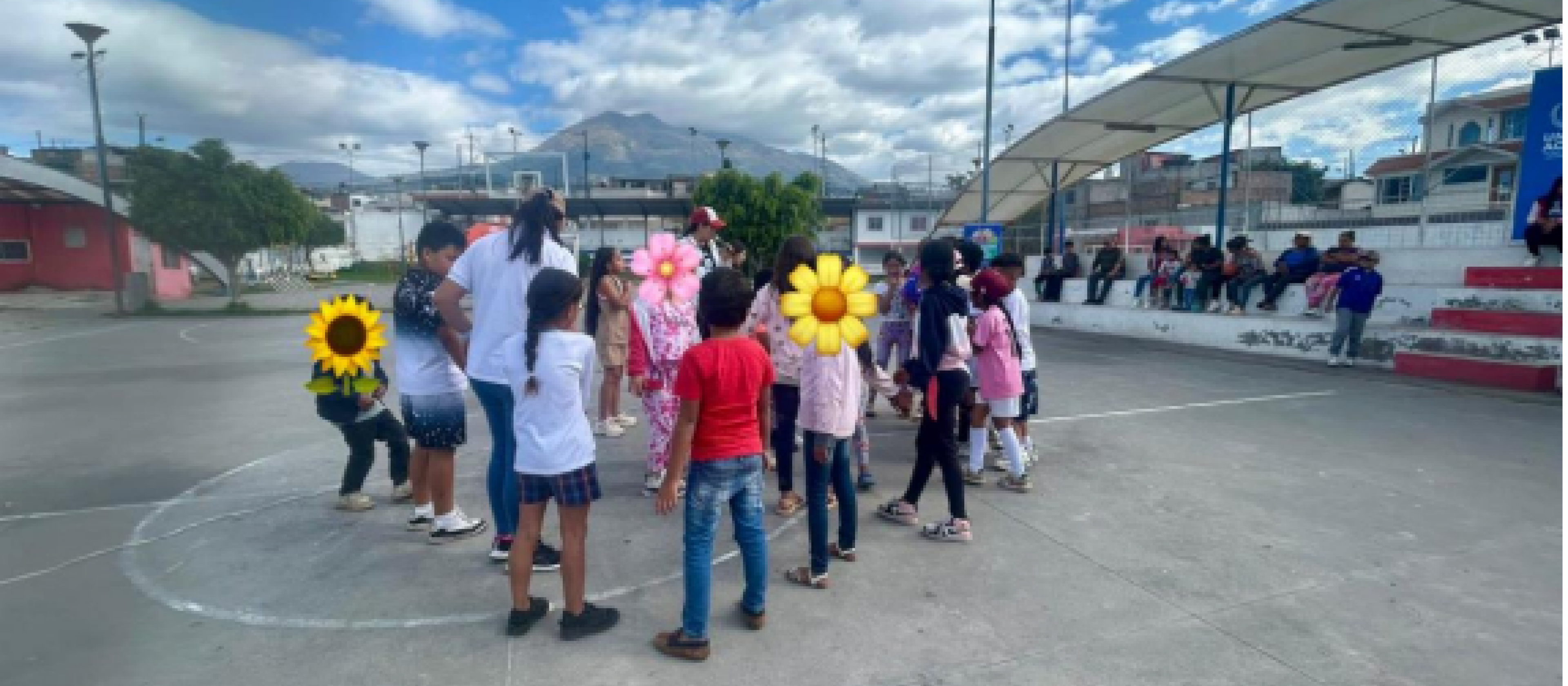 Lunedì sarà l'inaugurazione delle vacanze di “Pugacho” e alcuni “guaguas” stanno provando un pezzo teatrale che ho scritto io stessa. Prendo una borsa, carica di mandarini, e mi preparo a distribuirla. Sono le 9:30 del mattino e so dall'inizio delle prove che la maggior parte non fa colazione. Mi chiedo se sarà qualcosa delle vacanze, dove vanno a letto e si alzano tardi, o se davvero vanno a scuola senza aver digerito alcun alimento. Sono dubbi che si vanno accumulando nel mio stomaco, ma preferisco tenermeli e agire subito. Entro nel ruolo di regista, correggo alcuni errori, ma soprattutto rinforzo positivamente tutto quello che hanno fatto bene.